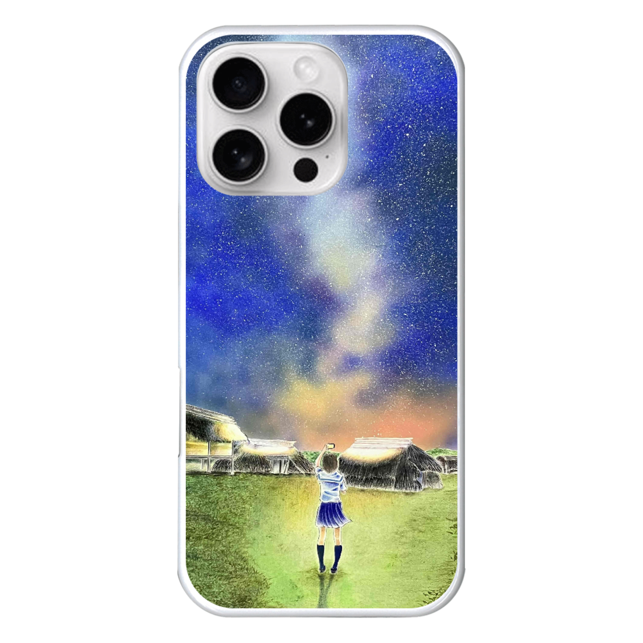 ・長崎県壱岐市の観光名所「原の辻遺跡(はるのつじいせき)」を題材にしたショップオーナーの自作画でデザインしたiPhone16Pro用のハードケース「星降る夜に…原の辻遺跡(はるのつじいせき)ノスタルジー」は、幻想的な風景を表現した美しいアートが特徴です。日常のコーディネートに個性をプラスしながら、スマートフォンをしっかりと保護する頼もしいアイテムです。耐久性に優れた素材を使用しており、大切なデバイスを安心して守ります。